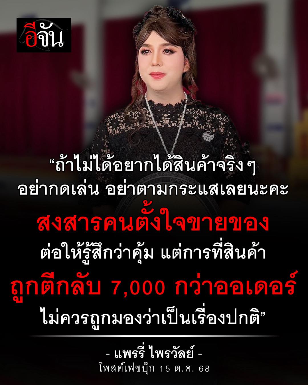 ถ้าไม่ได้ต้องการอยากได้สินค้าจริงๆ  อย่ากดเล่น อย่าตามกระแสเลยนะคะ  สงสารคนตั้งใจขายของ ต่อให้รู้สึกว่าคุ้ม แต่การที่สินค้าถูกตีกลับ 7,000 กว่าออเดอร์ ไม่ควรถูกมองว่าเป็นเรื่องปกติ